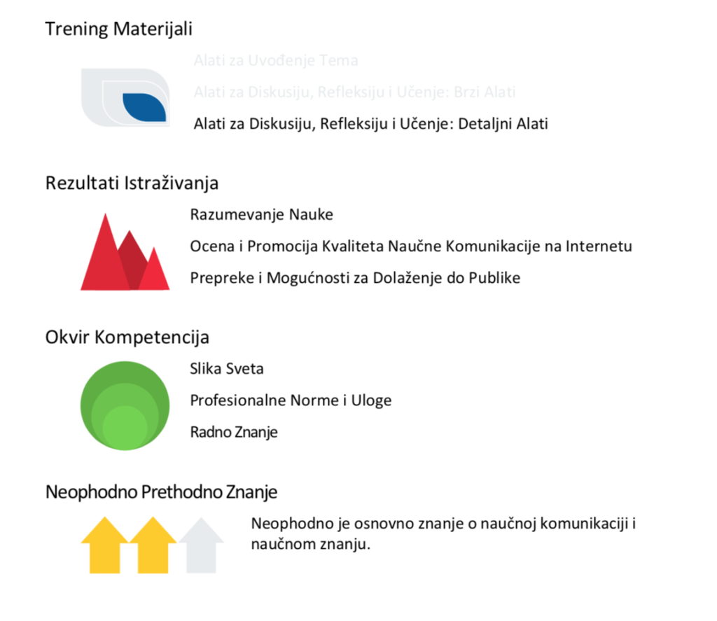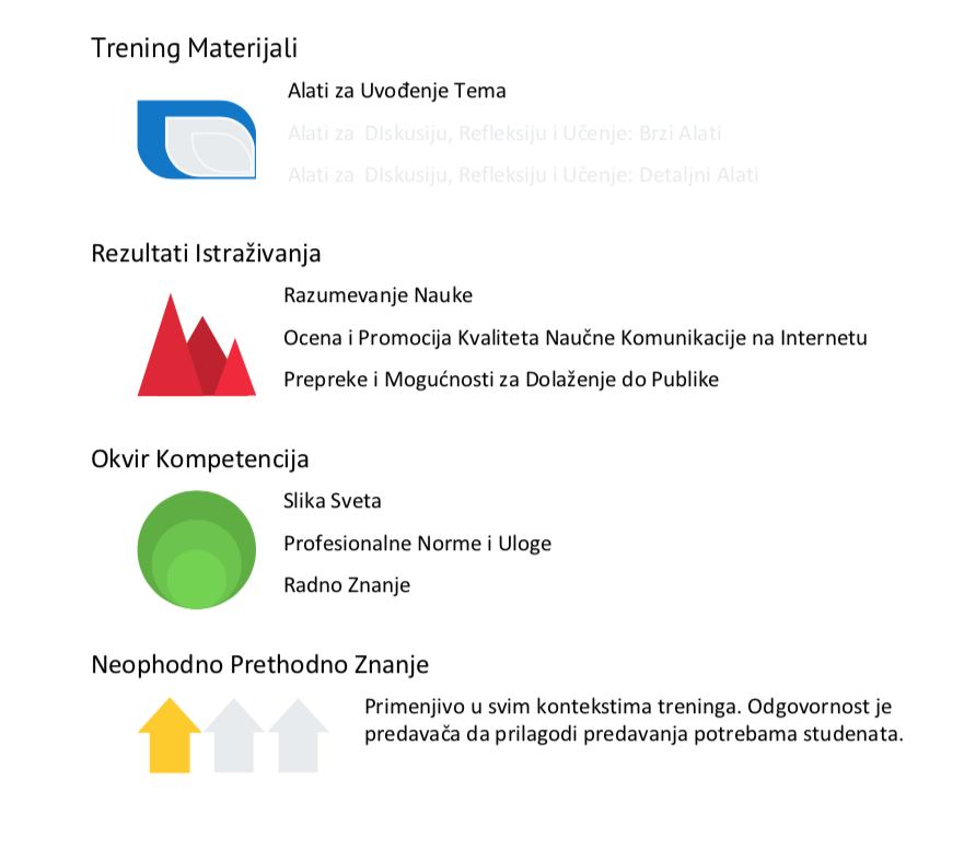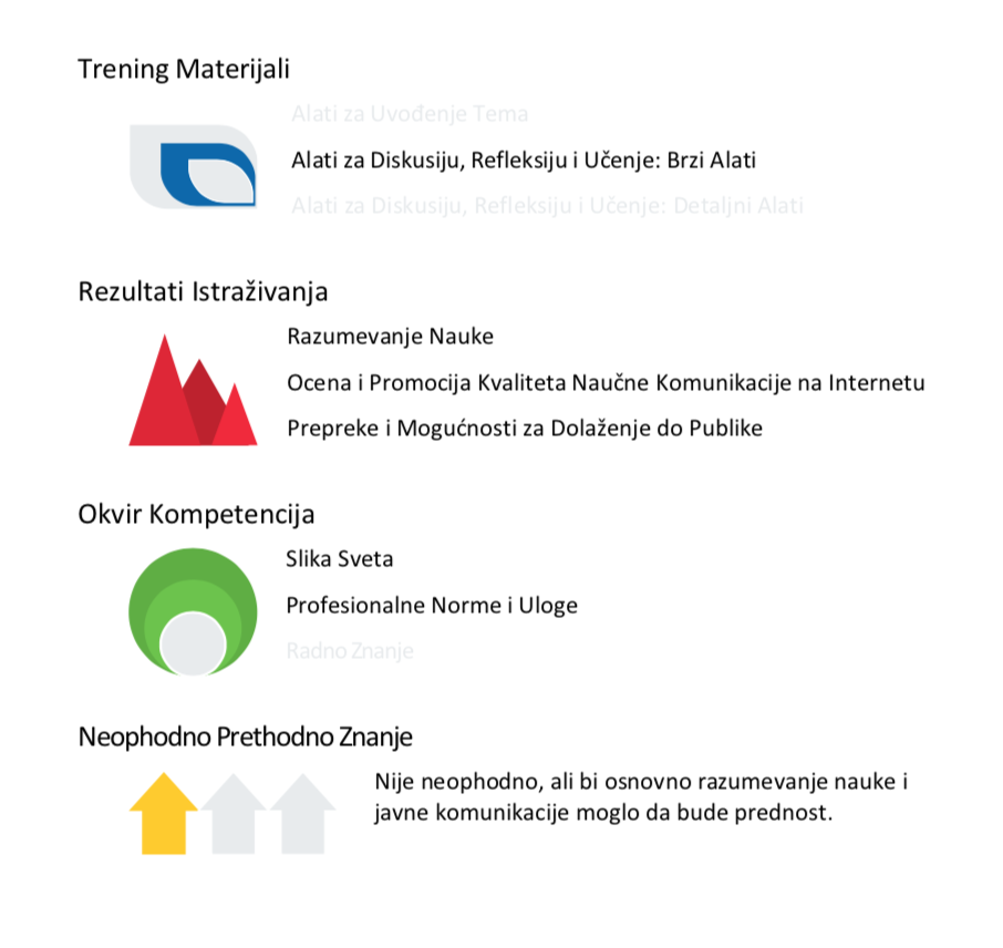 Materijal koji sledi može vam pomoći da razvijete nivo kompetencije za naučnu komunikaciju vaših studenata fokusom na tri gore pomenute teme.